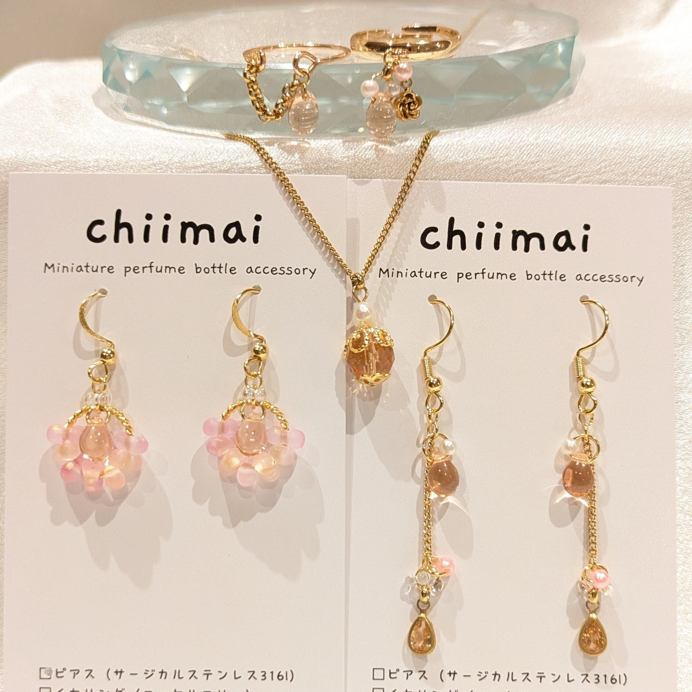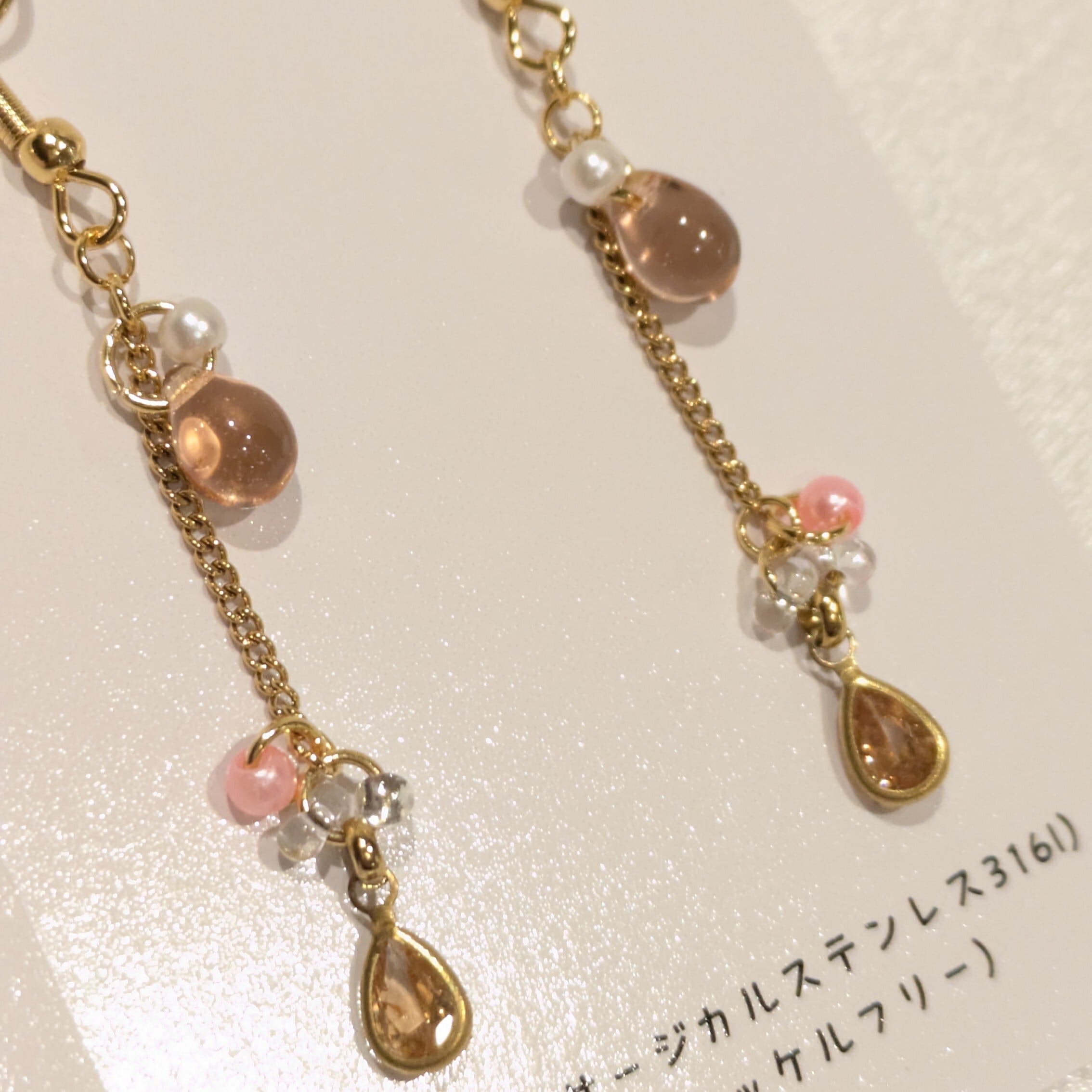 素材:サージカルステンレス316l、ピンクジルコニア、チェコビーズ、ガラスビーズ、合金メッキ金具他