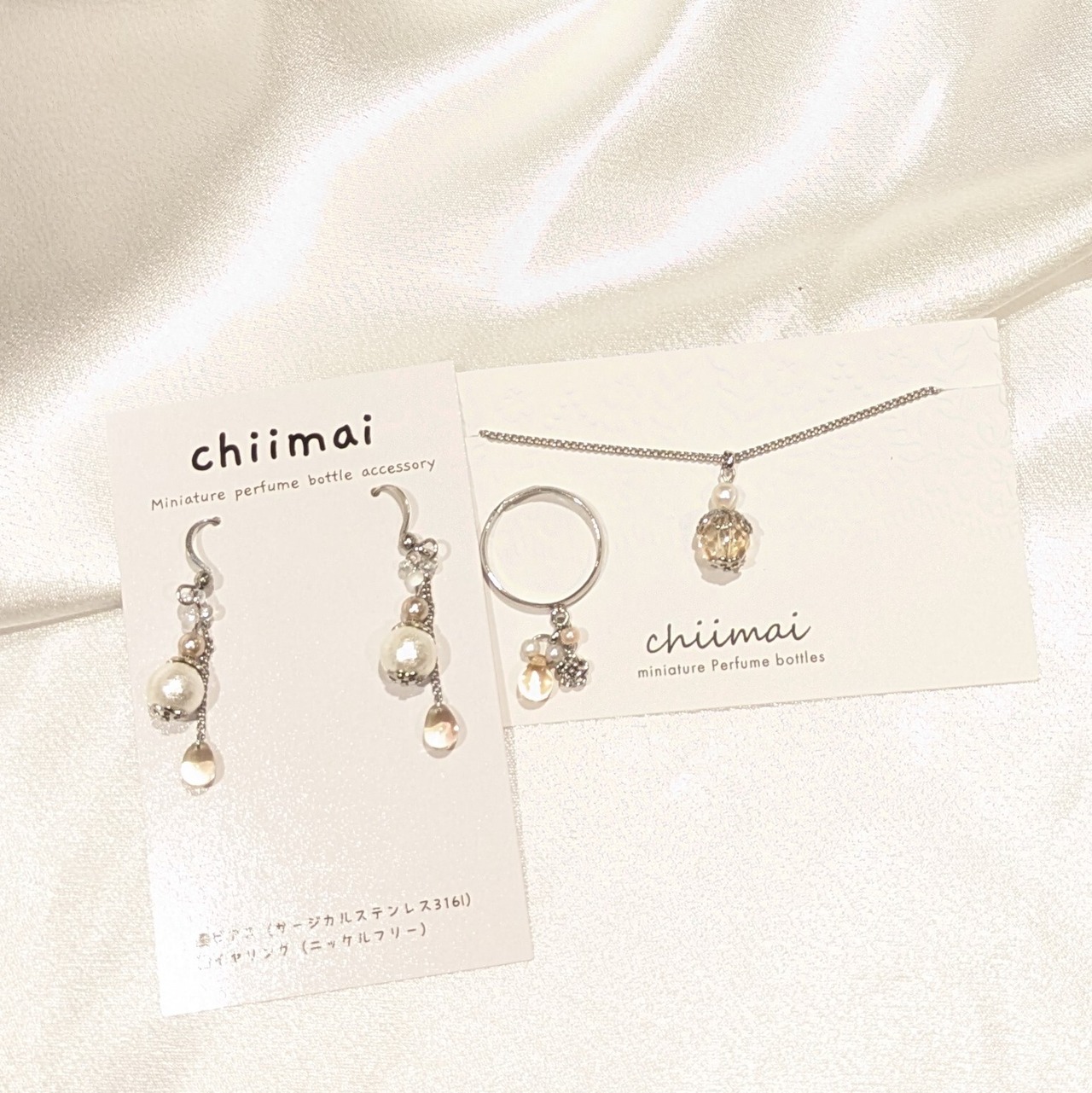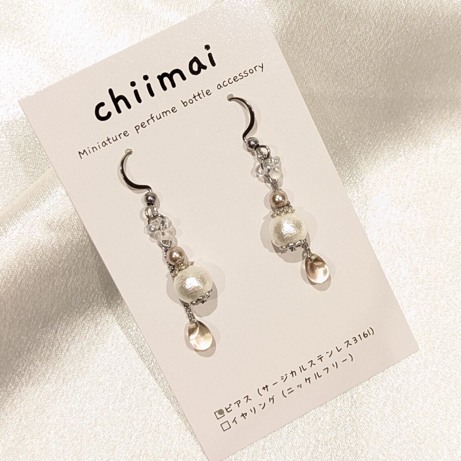 素材:サージカルステンレス316l、コットンパール、チェコビーズ、ガラスビーズ、合金メッキ金具他