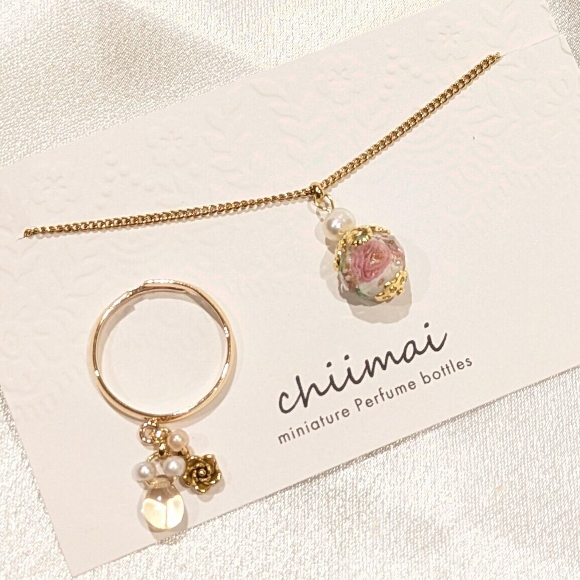 バラ模様香水瓶ネックレス入り