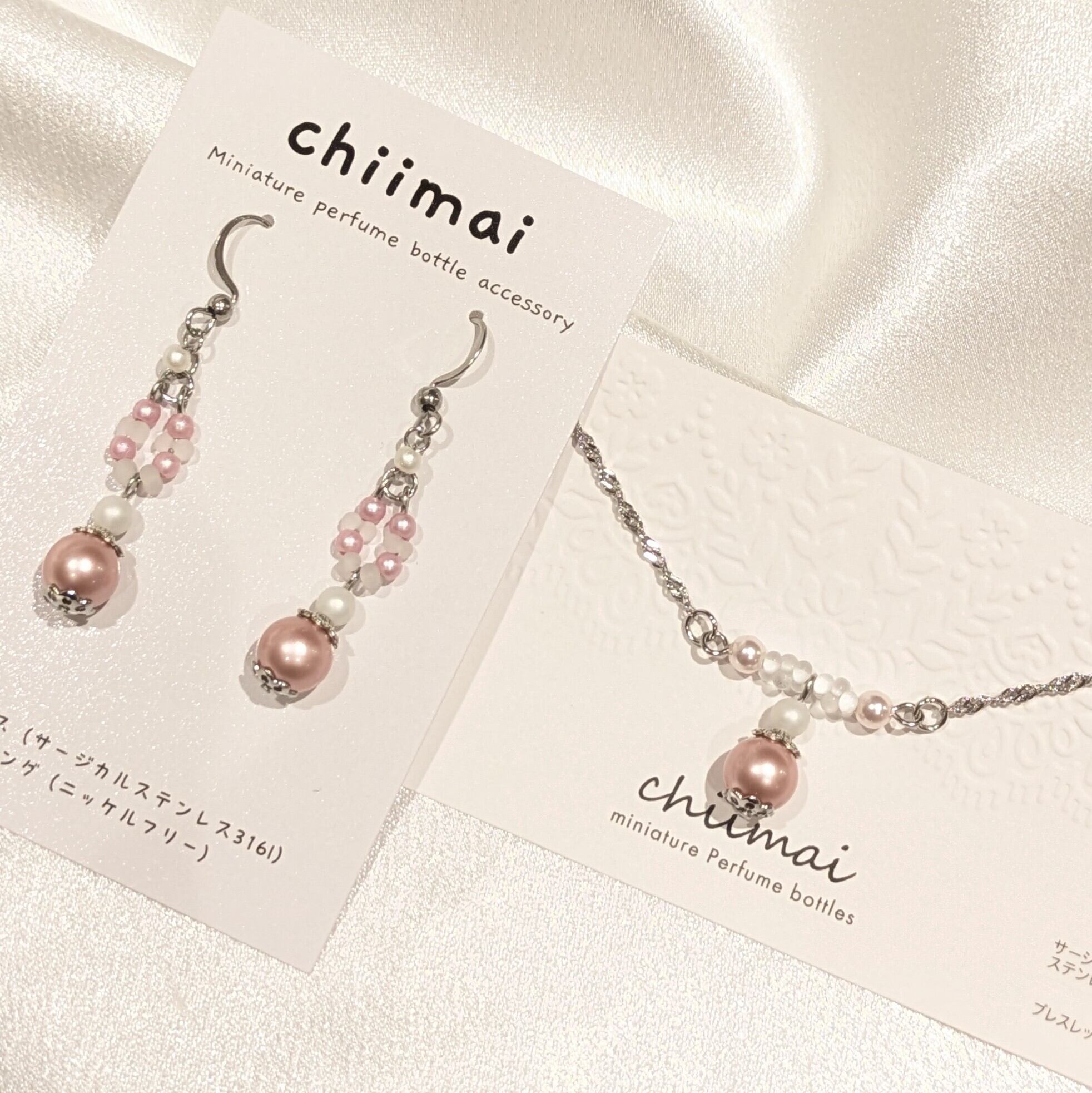 素材:サージカルステンレス316l、ガラスパール、チェコビーズ、ガラスビーズ、合金メッキ金具他